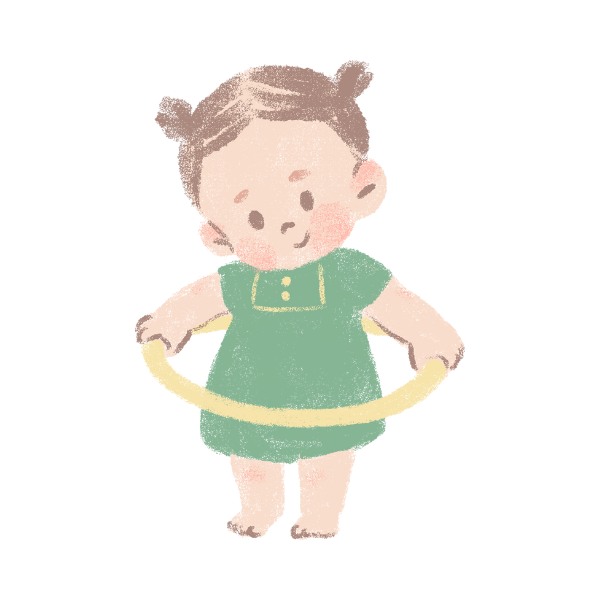 リズム、音程、音の高低など音楽要素に合わせた動きや、心と体の発達に大切な動きなど目的に合わせて取り入れています。
